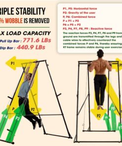 - [Amazing Workout Experience] Rising above competitors, the KT Folding Pullup Dip Stand accommodates both basic and advanced exercises, including muscle-ups and kipping pull-ups. Engineered for quad-directional stability and boasting a superior 771.6 lbs capacity, it ensures safe, effective, and comfortable workouts. Its remarkable 101.57” max height and enhanced sturdiness eliminate 94% of wobble, providing an unparalleled high-quality pull-up/chin-up experience with full-body stretching